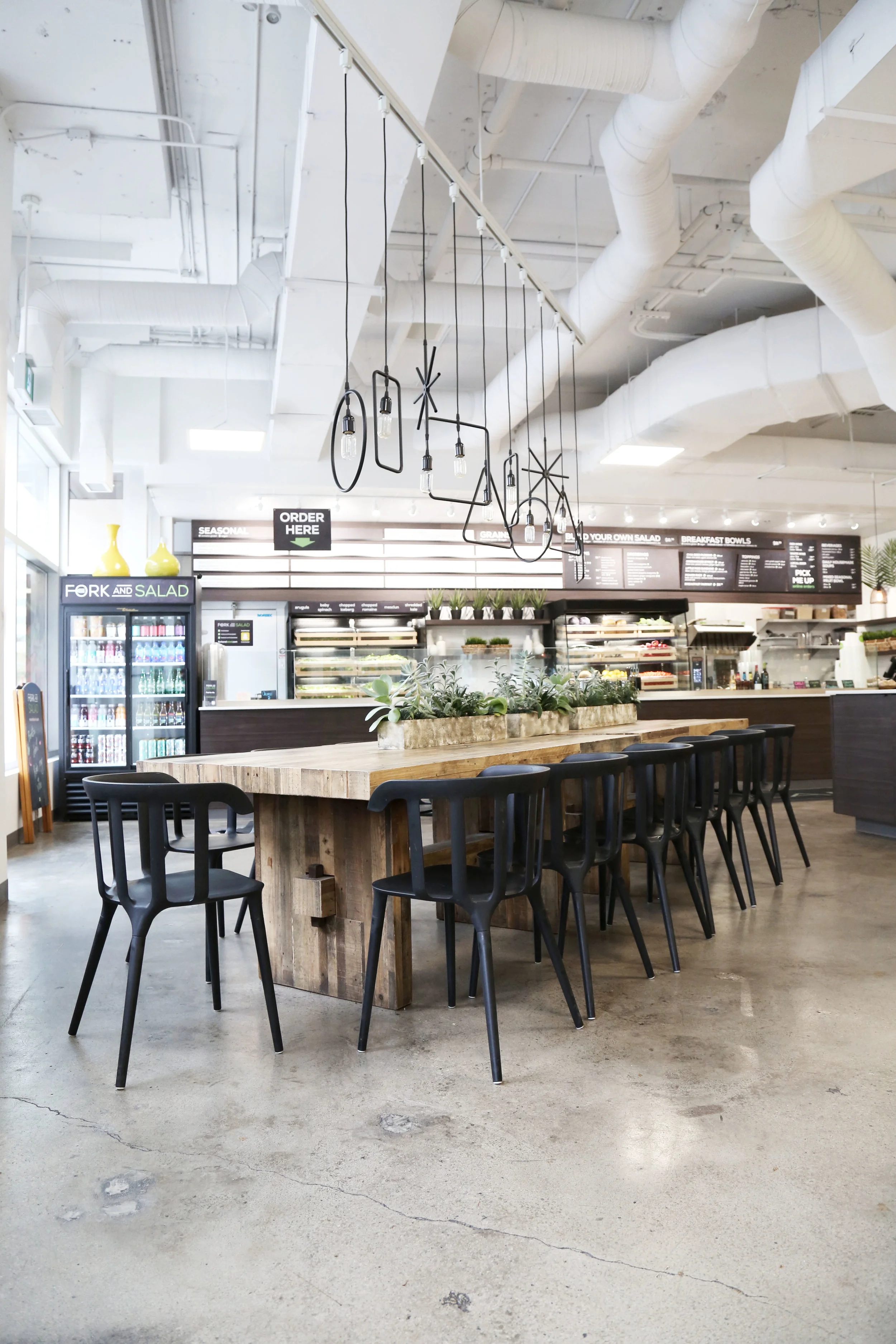 Fork and Salad was founded with a vision to make grab’n go healthier and more sustainable. We worked hard to provide them with a space that could seamlessly allow their vision to become a reality! We needed to create a room that could handle both dining in and taking out. If you haven’t been in to try their salads yet; we highly recommend it.