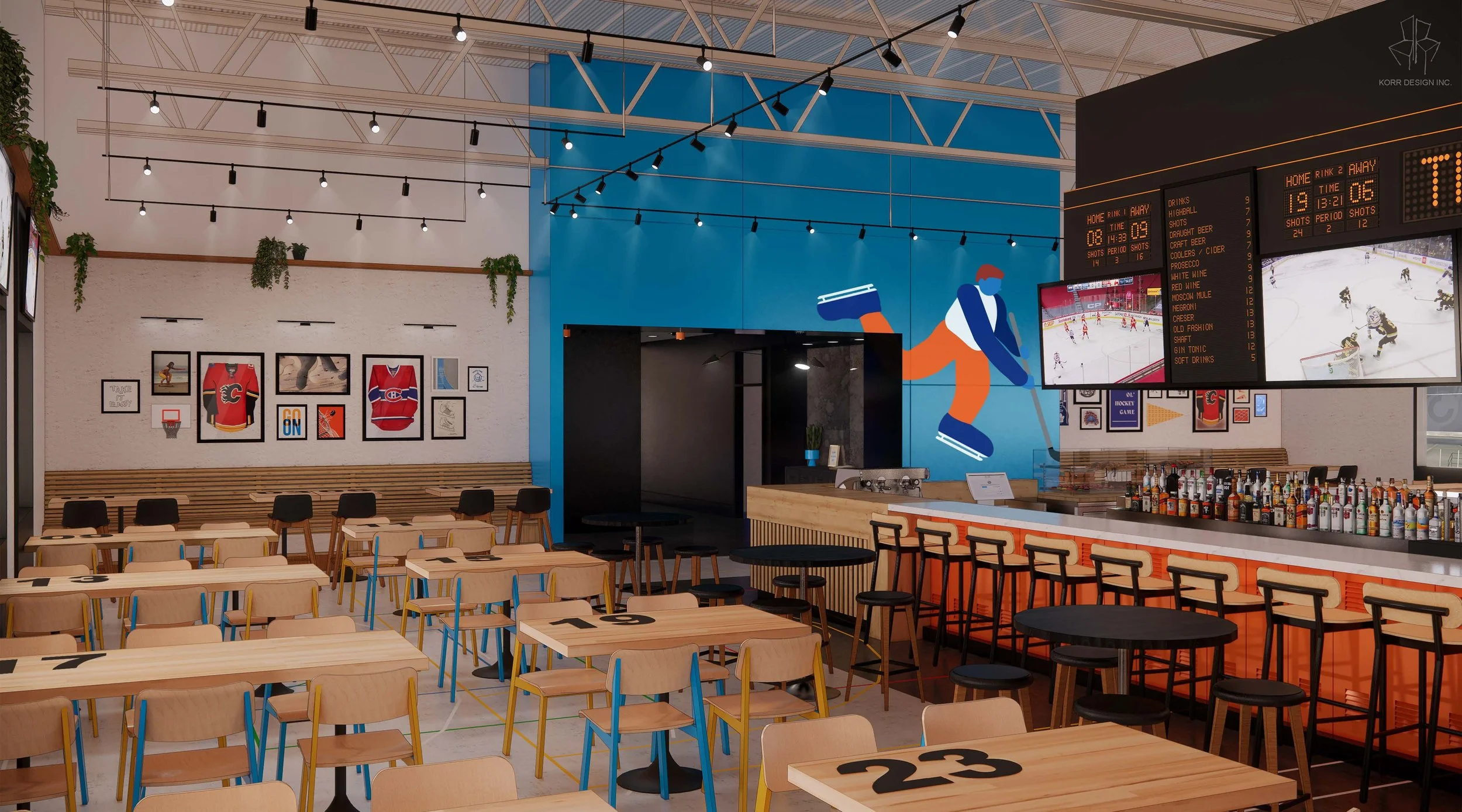 Introducing The Bench: Where Community, Sports, and Culinary Delights Unite. Located within Cardel Rec South, The Bench fills a void in the center's amenities by providing a vibrant gathering place for visitors to meet, indulge, and celebrate sports. Positioned between two hockey arenas, it is the ideal spot to gather and watch games.